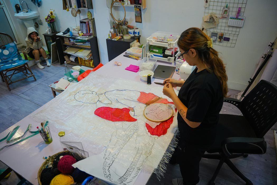 This exhibition is a culmination and a continuation. These artistic responses create the space for stories to resonate beyond their places of origin. Through intimate acts of making and listening, the artists seek to build solidarity, raise awareness, and contribute to the ongoing movements toward equity, dignity, and justice. These works are echoes of real lives, rich with complexity, memory, and power, of women who create support systems for each other, and face challenges and isolation when those are absent.