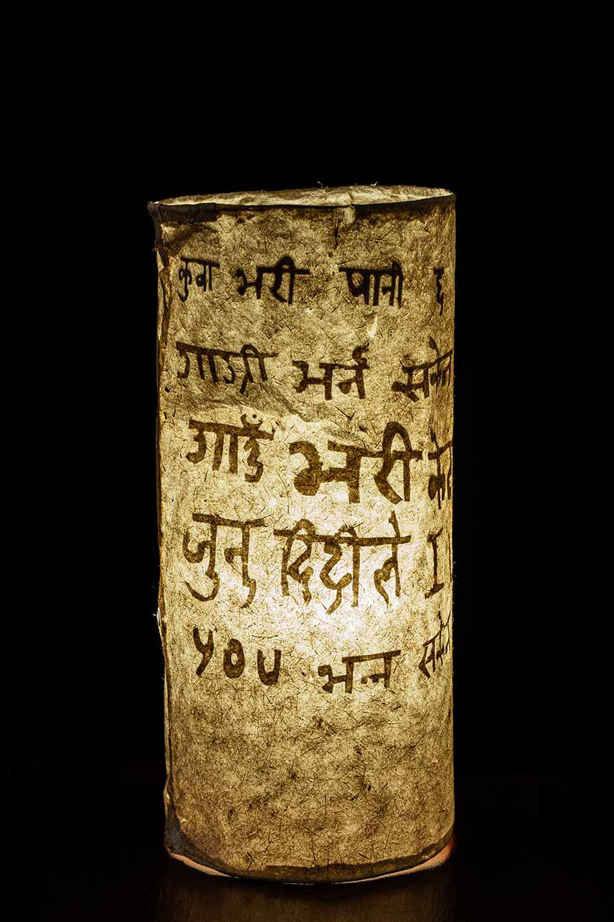 Junu Maya Tamang draws profound inspiration from Nature. Her work weaves together social relationships, memory, and time and space within Nature. She has been practicing traditional methods of papermaking and exploring text and image-making to develop a contemporary dialogue with the medium. Here, she creates paper using plant fibers, which she weaves into the traditional gundri mat.